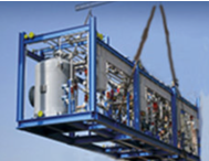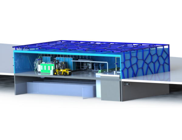 Dimensions of 10m3/h module is: 5m(L) x 4m(W) x 4m(H). Occupied surface: 20m2 (215sqft)